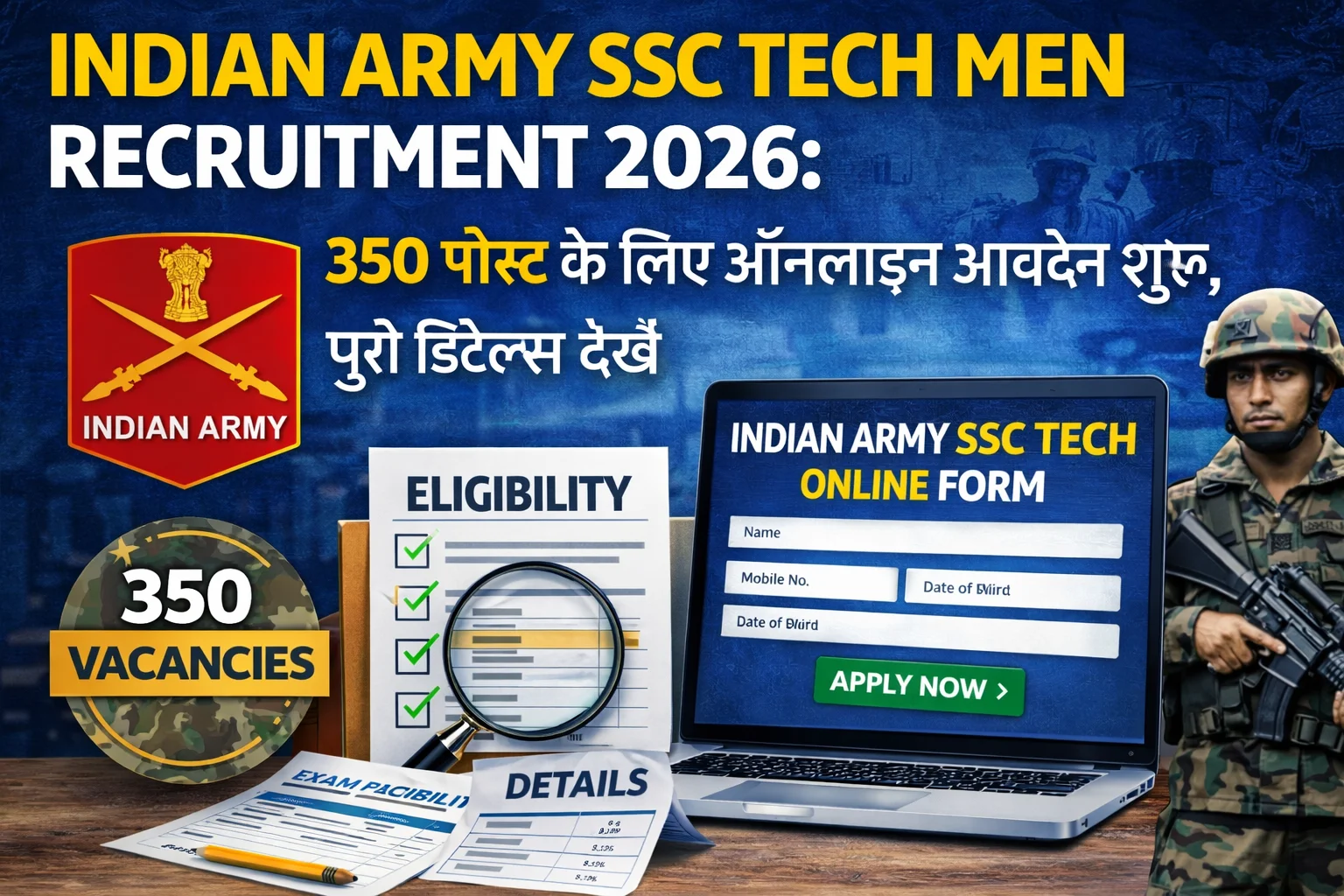 Indian Army SSC Tech Men Recruitment 2026, 350 पोस्ट के लिए ऑनलाइन आवेदन शुरू, पूरी डिटेल्स देखें