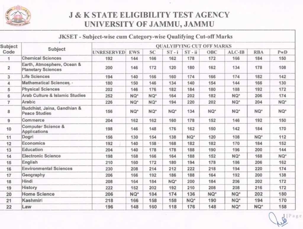क्या JKSET कट ऑफ उसके रिजल्ट के साथ जारी किया जाता है?